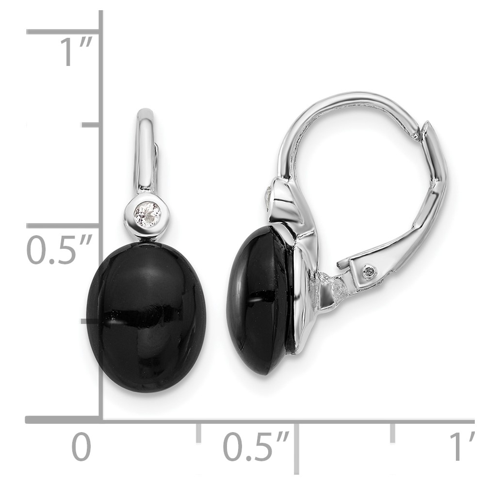 Sterling Silver RH-plated Polished Onyx & White Topaz Leverback Earrings