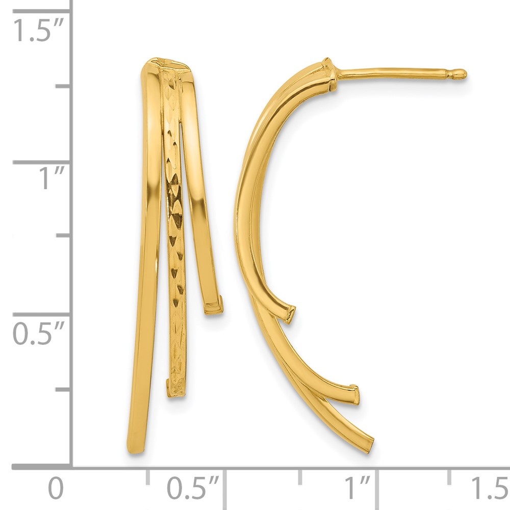 Leslie's 14K Polished and D/C 3-Row Drop Post Earrings