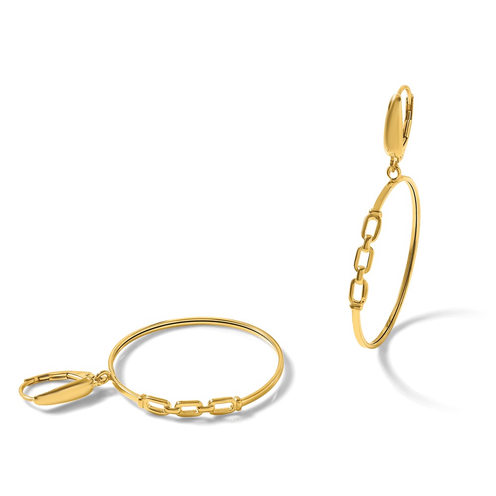 Leslie's 14K Polished Link Design Leverback Hoop Earrings