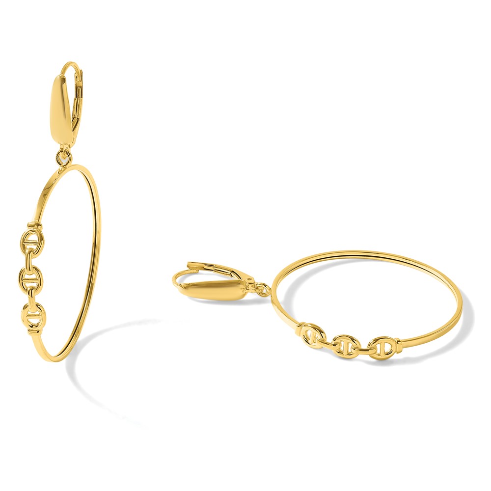 Leslie's 14K Polished Link Design Leverback Hoop Earrings