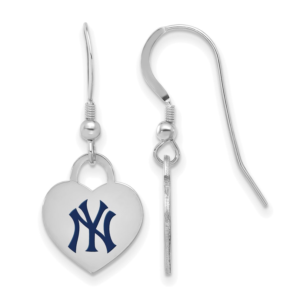 Sterling Silver Rhodium Plated Major League Baseball LogoArt New York Yankees Enamel Heart Dangle Earrings