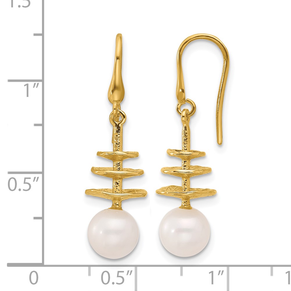 Herco 14K Polished and Textured Freshwater Cultured Pearls and Three Disc Shephard Hook Dangle Earrings