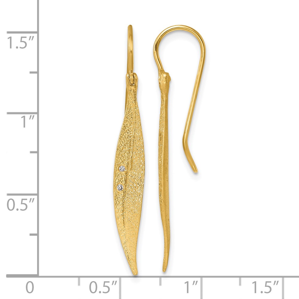 Herco 14K Brushed and Textured Diamond Short Leaf Shephard Hook Dangle Earrings