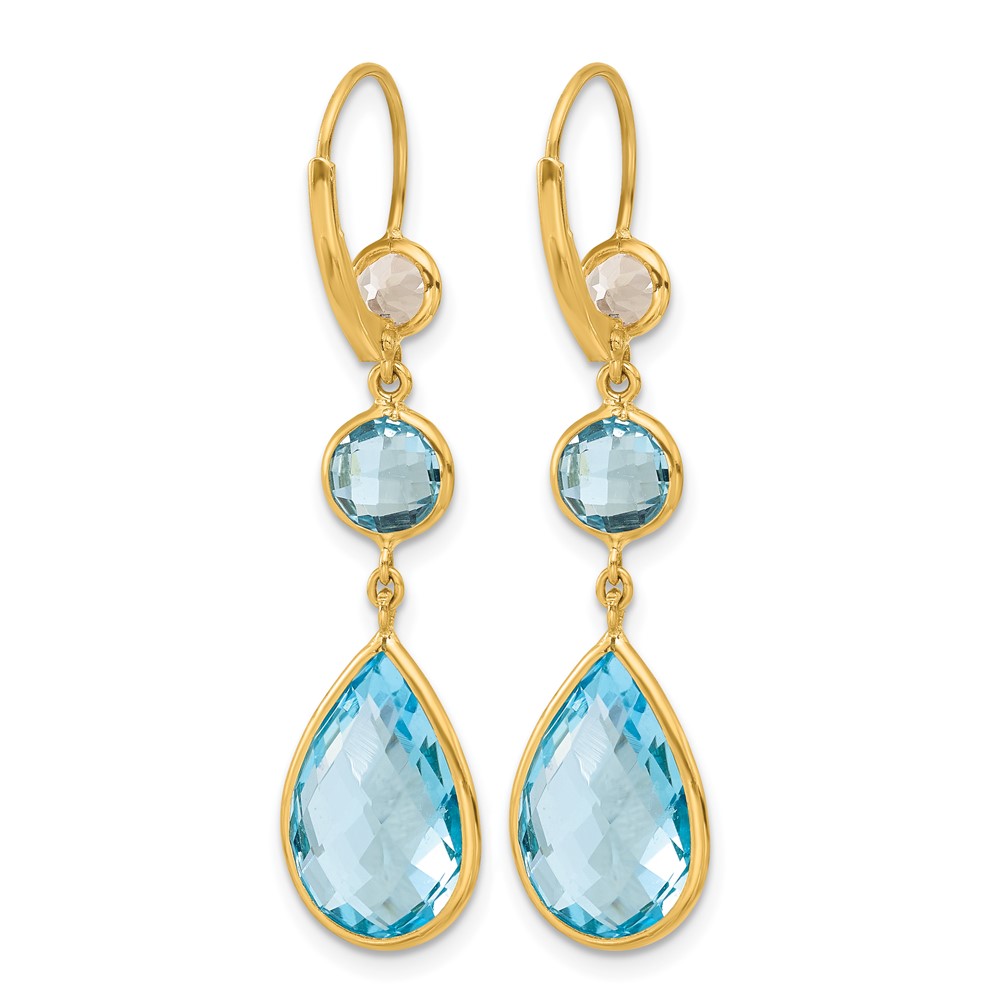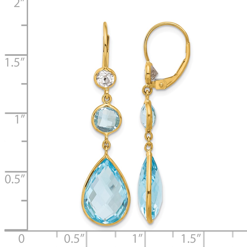 Herco 14K Polished Blue and White Topaz Leverback Dangle Earrings
