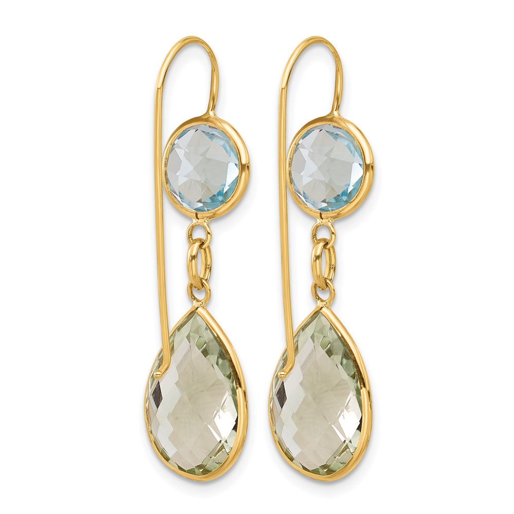 Herco 14K Polished Blue Topaz and Green Quartz Leverback Dangle Earrings