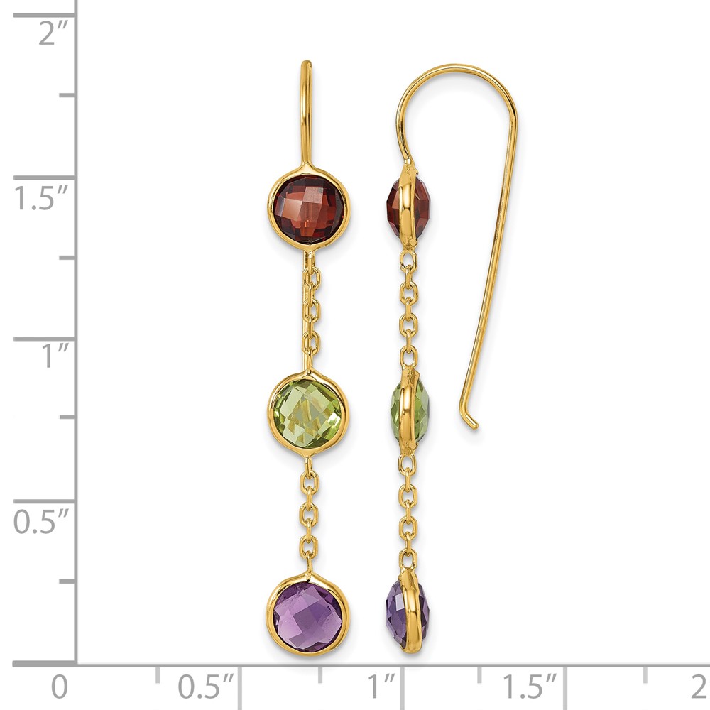 Herco 14K Polished Garnet Peridot and Amethyst Shephard Hook Dangle Earrings