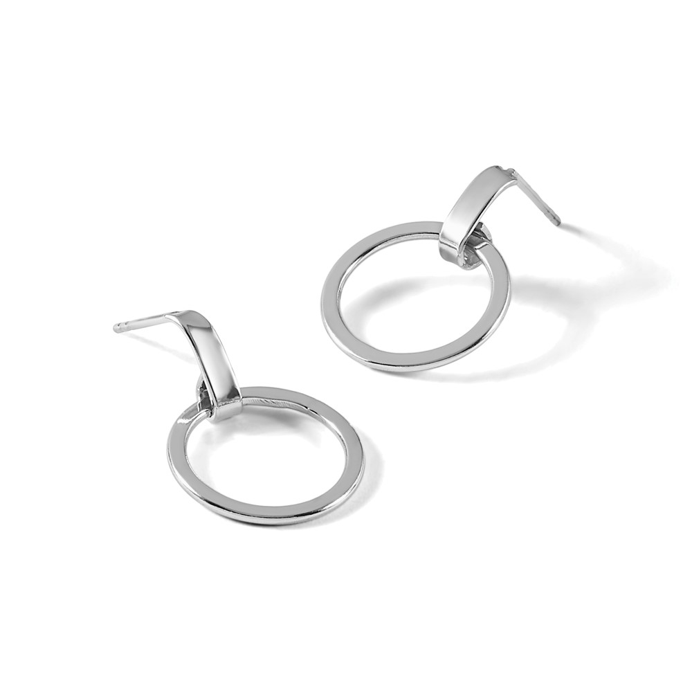 Leslie's Sterling Silver Rhodium-plated Polished Circle Dangle Earrings