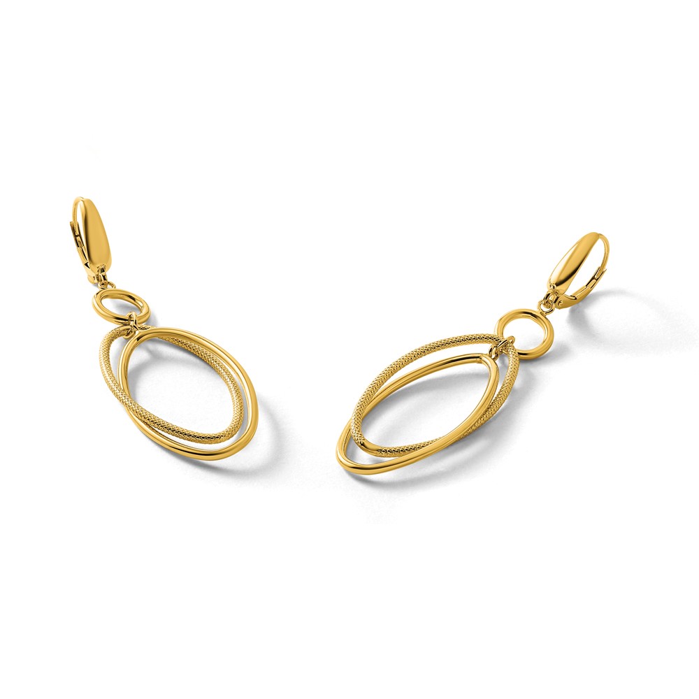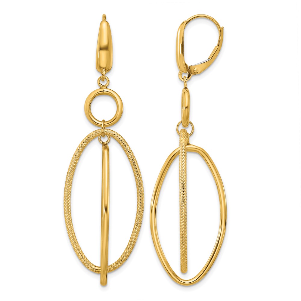 Leslie's 10k Polished and Textured Oval Dangle Leverback Earrings