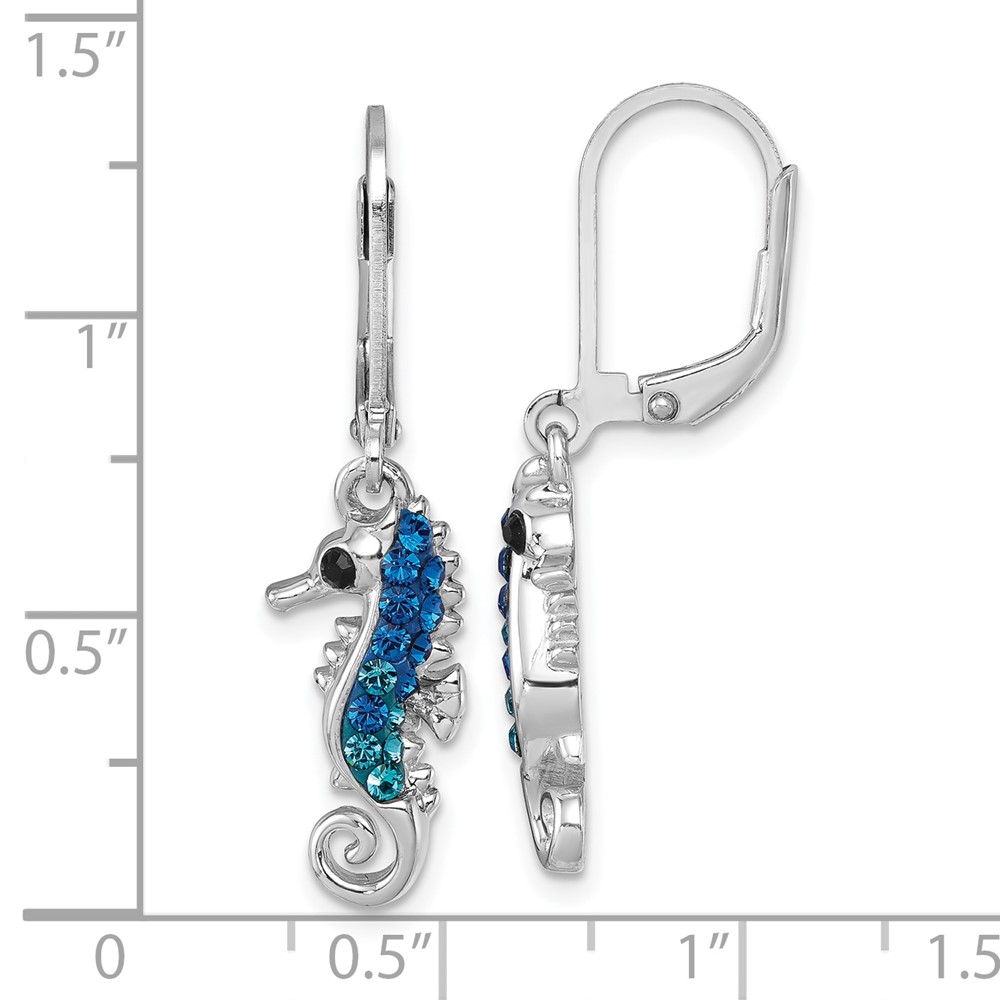 Sterling Silver Rhodium-plated Polished Blue Crystal Seahorse Dangle Earrings