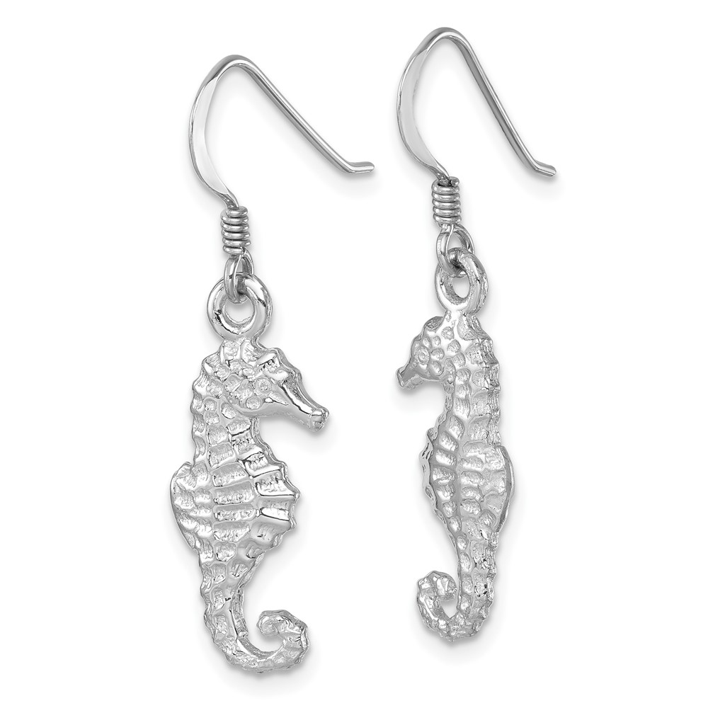 Sterling Silver Rhodium-plated Polished Seahorse Dangle Earring