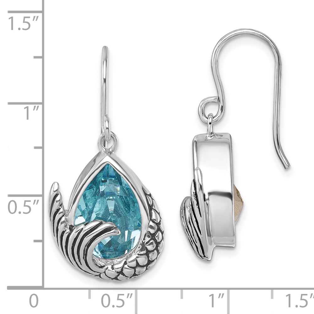 Sterling Silver Rhodium-plated Created Blue Inlay Opal Sandal Dangle Earrings