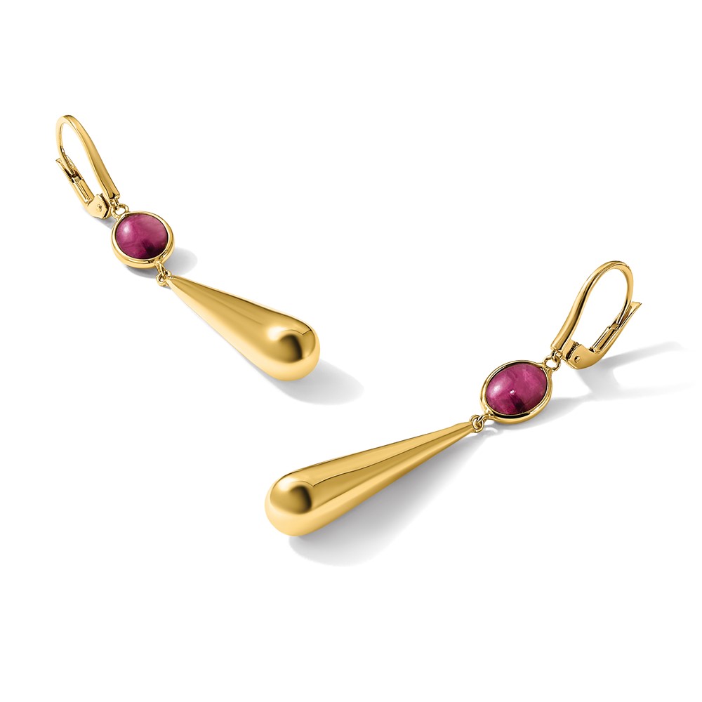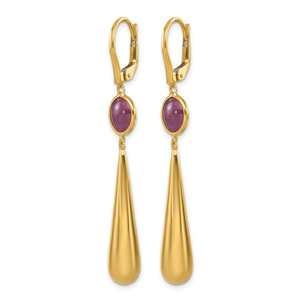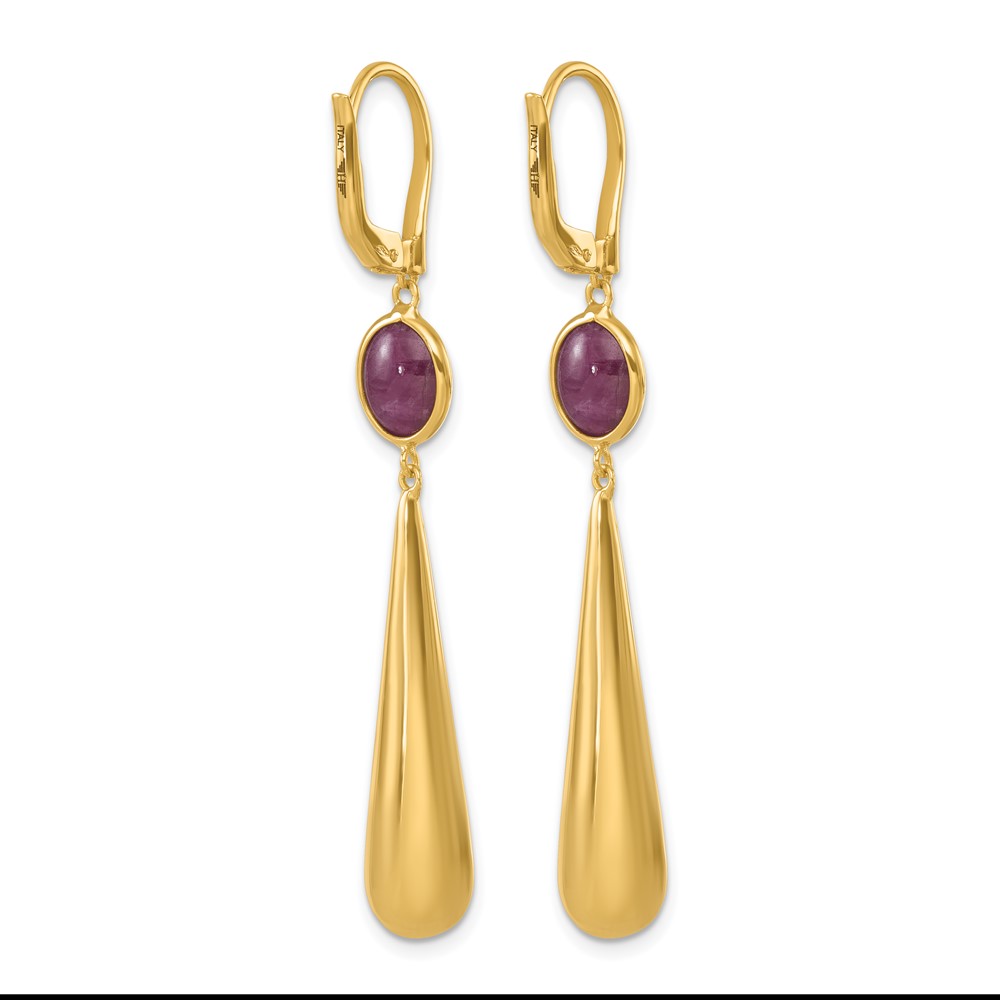 Herco 18K Polished Red Corundum Teardrop Leverback Dangle Earrings