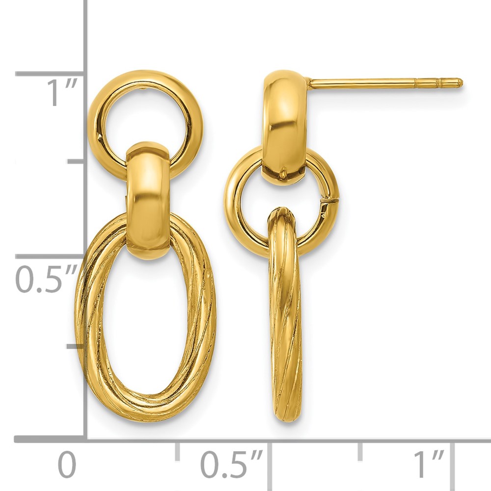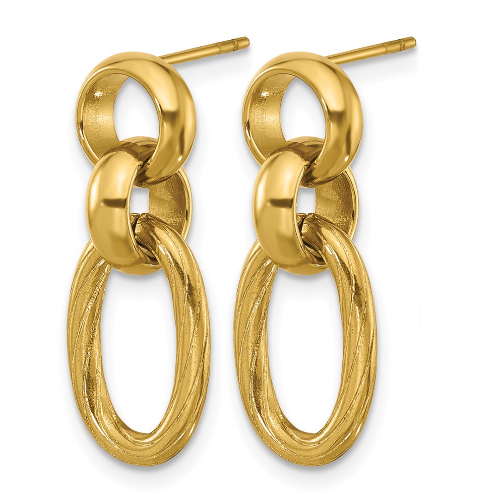 Chisel Stainless Steel Polished and Textured Yellow IP-plated Open Link Post Dangle Earrings