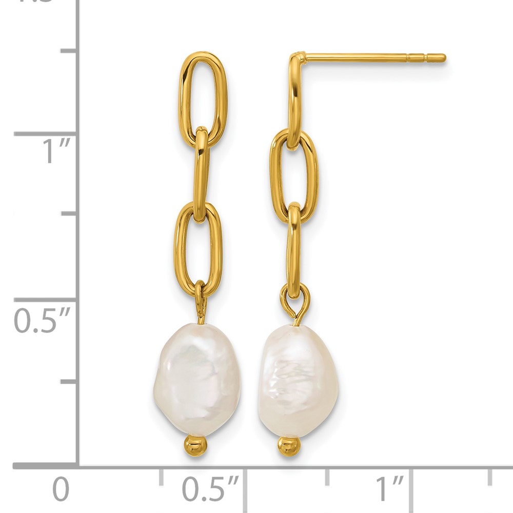 Chisel Stainless Steel Polished Yellow IP-plated Open Chain with Freshwater Cultured Pearl Post Dangle Earrings