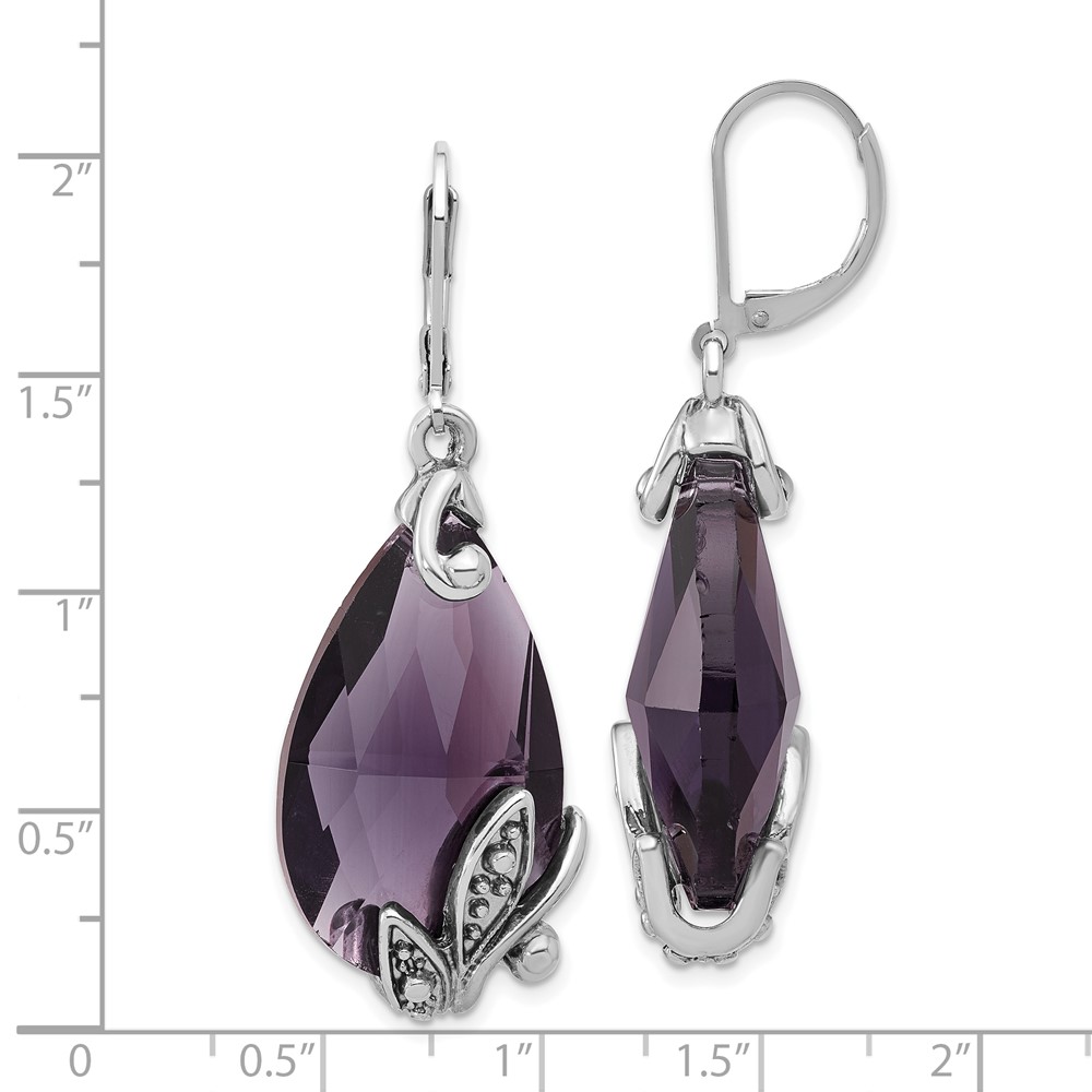 1928 Silver-tone Purple Teardrop Dangle Leverback Earrings