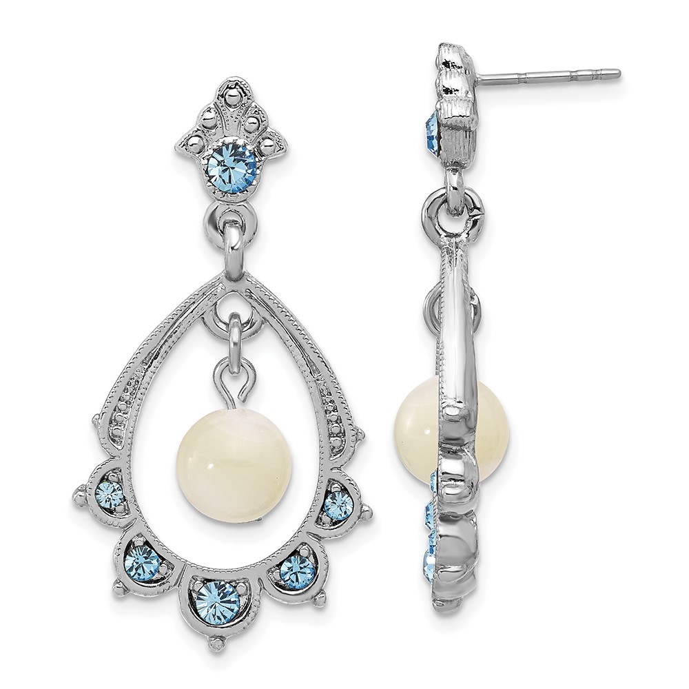 1928 Silver-tone Blue Crystal and Mother Of Pearl Oval Drop Dangle Earrings