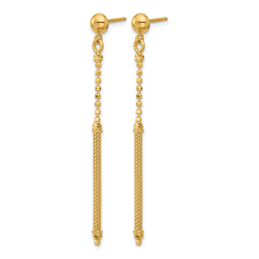 Leslie's 14K Polish/Texture/Dia-cut Bead w/Bar Dangle Post Earrings