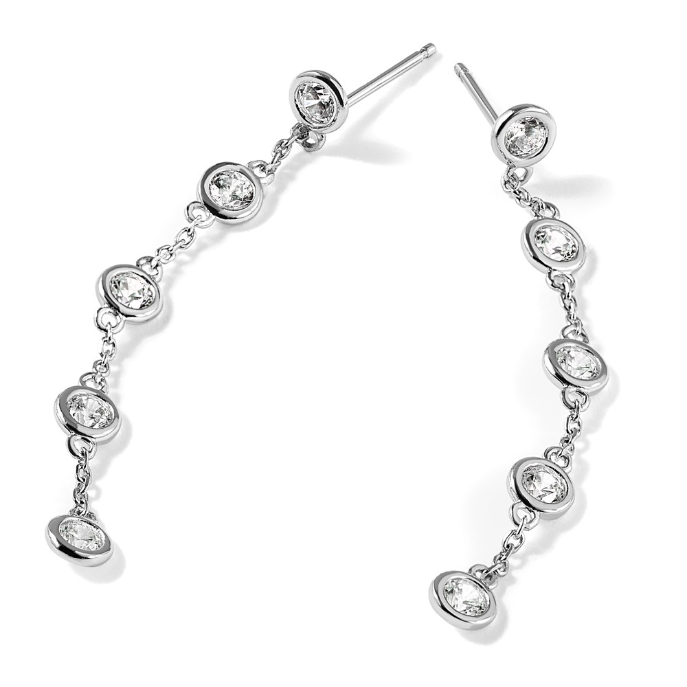 Sterling Silver Rhodium-plated CZ 5 Station Dangle Post Earrings
