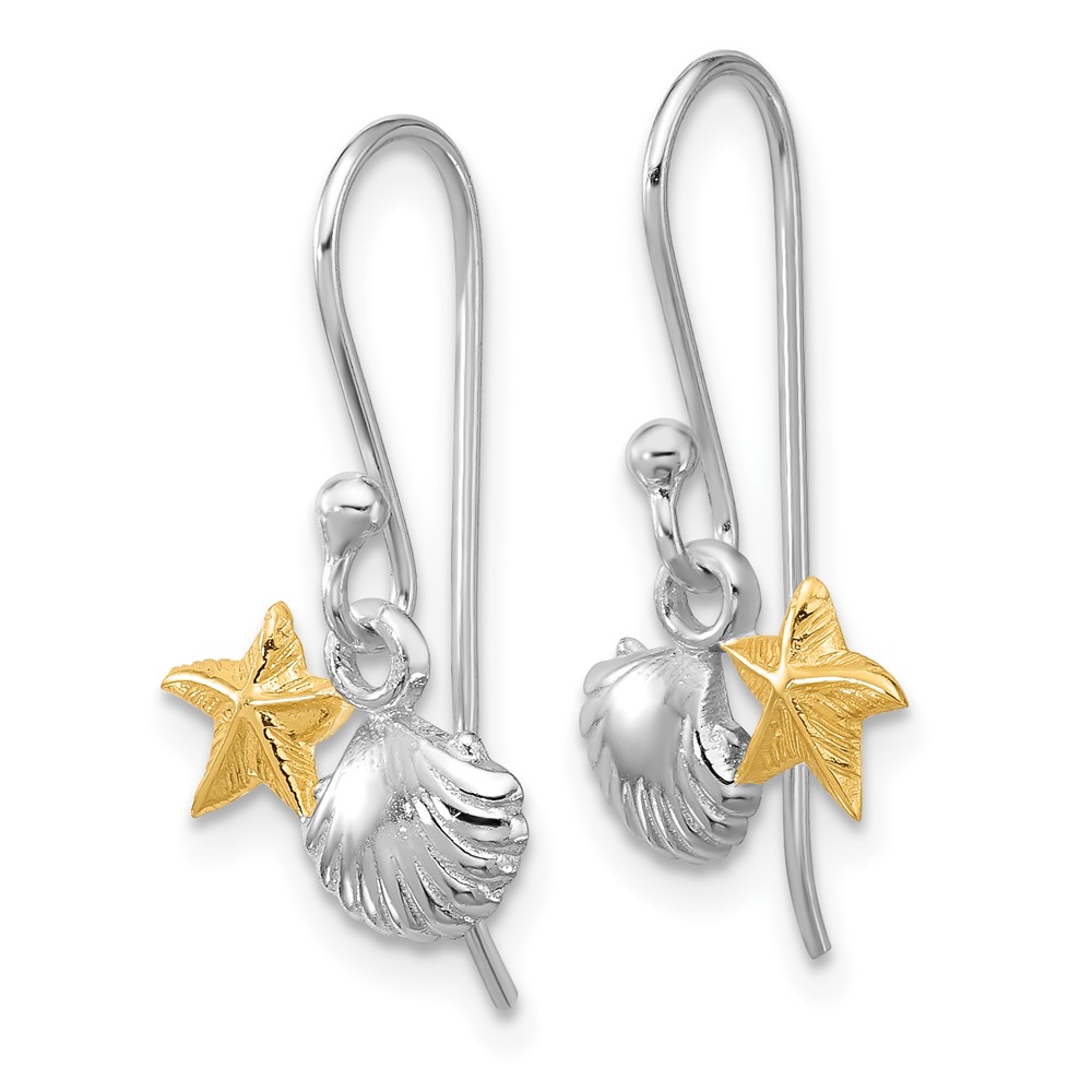 Sterling Silver RH-plated Flash Gold-plated Starfish & Shell Dangle Earring