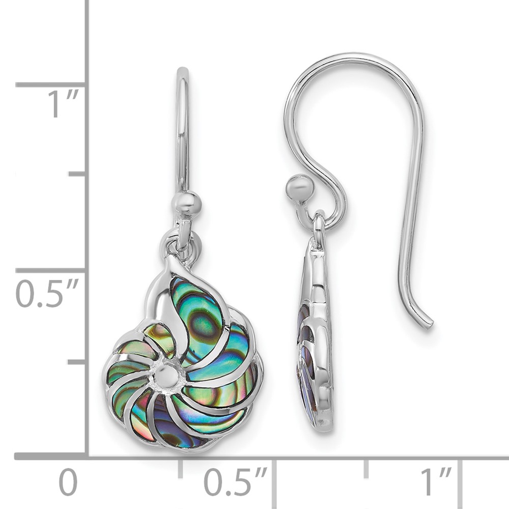 Sterling Silver Rh-plated Polished Abalone Swirl Shell Dangle Earrings