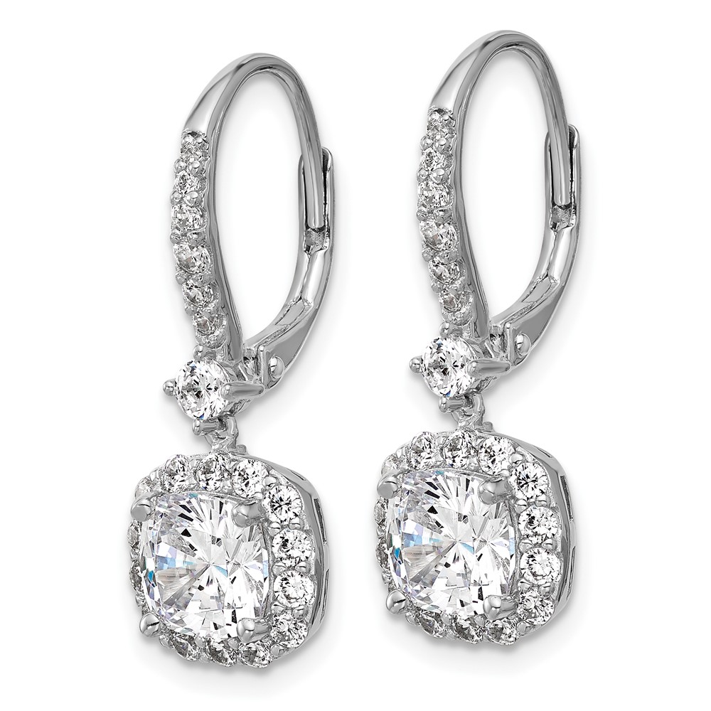 Cheryl M Sterling Silver Rhodium-plated Polished Cushion-cut CZ Halo Dangle Leverback Earrings