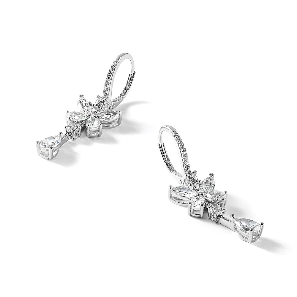 Cheryl M Sterling Silver Rhodium-plated Polished Fancy CZ Butterfly Leverback Dangle Earrings