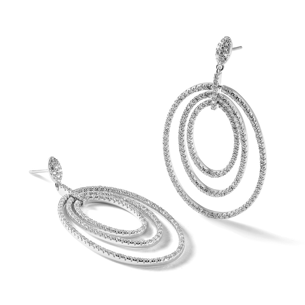 Cheryl M Sterling Silver Rhodium-plated Polished Fancy CZ Ovals Post Dangle Earrings