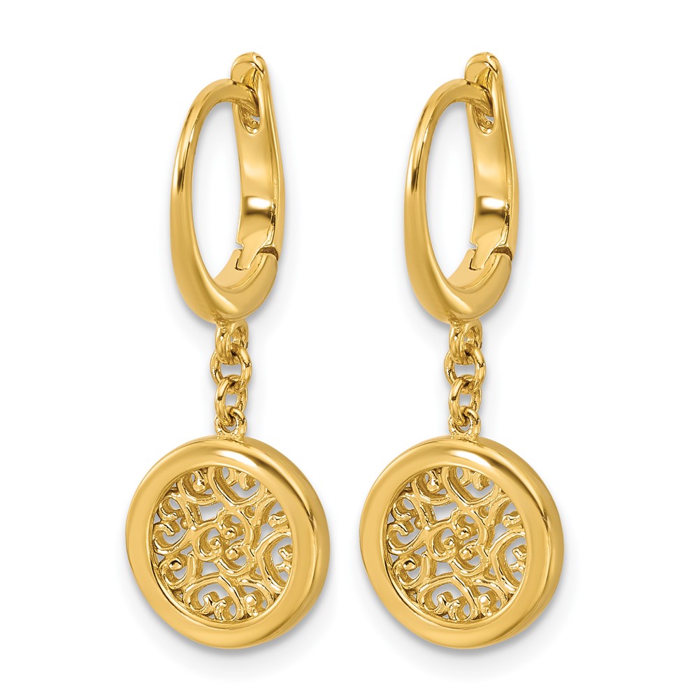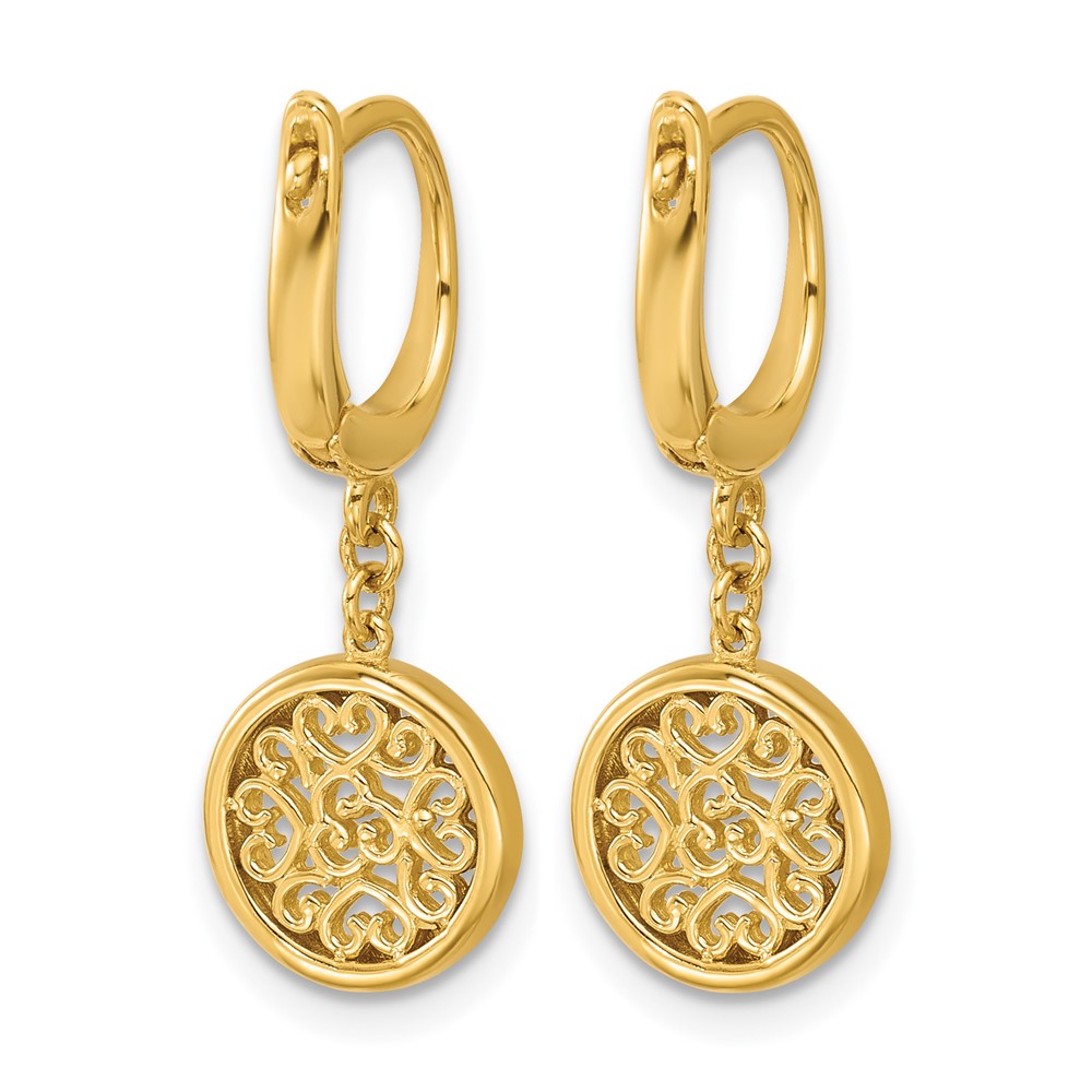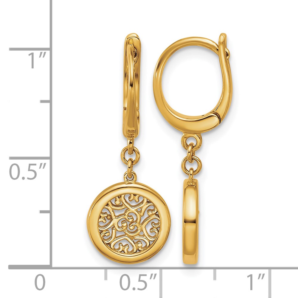 Leslie's 14K Polished Fancy Filigree Circle Leverback Dangle Earrings