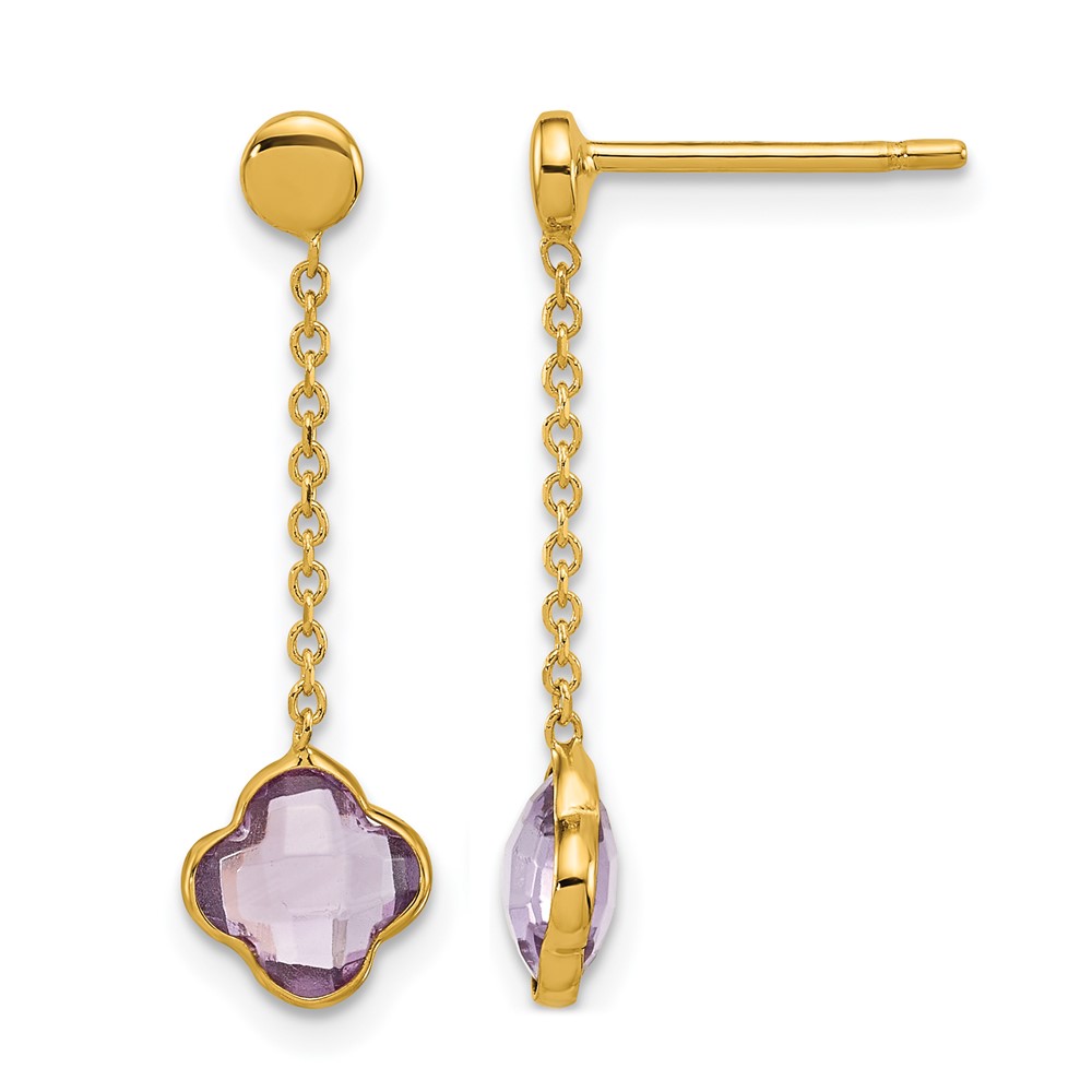 Herco 14K Polished Amethyst Quatrefoil Post Dangle Earrings