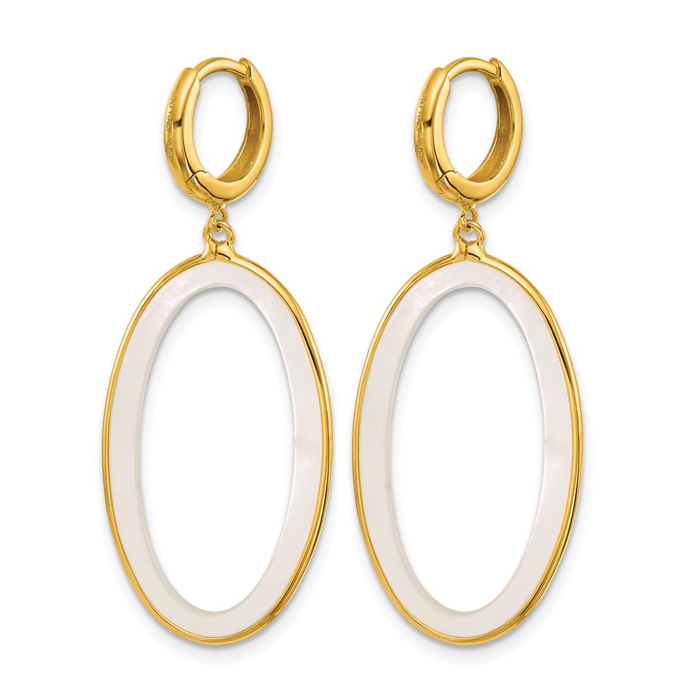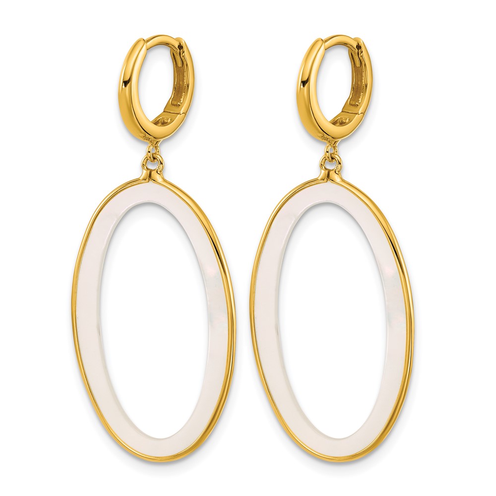 Herco 18K Polished Mother of Pearl Dangling Oval Hinged Hoop Earrings
