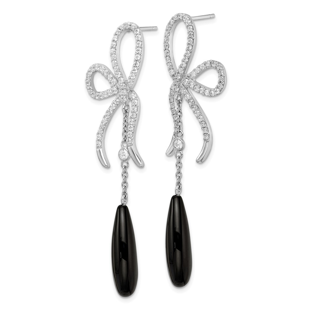 Cheryl M Sterling Silver Rhodium-plated Polished Fancy Onyx and CZ Bow Post Dangle Earrings