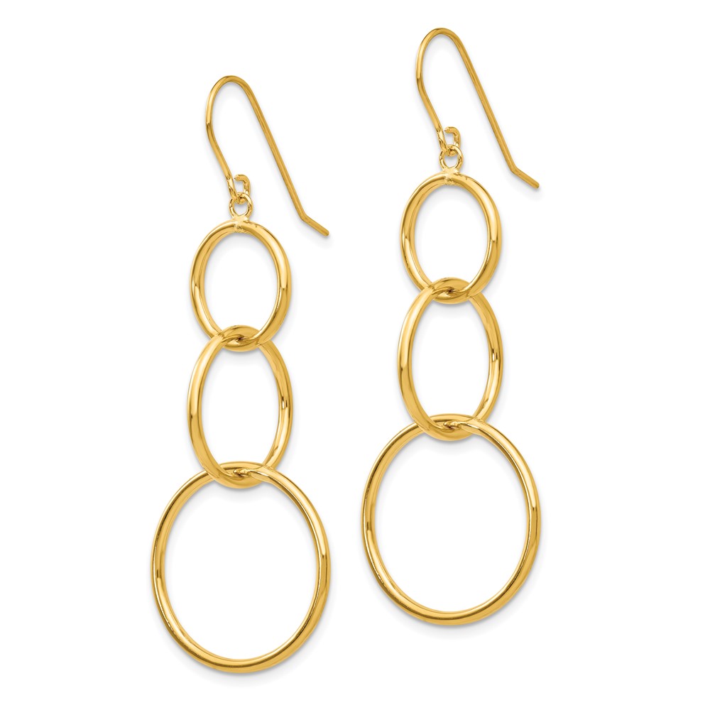 14k 3 Circle Dangle Wire Earrings