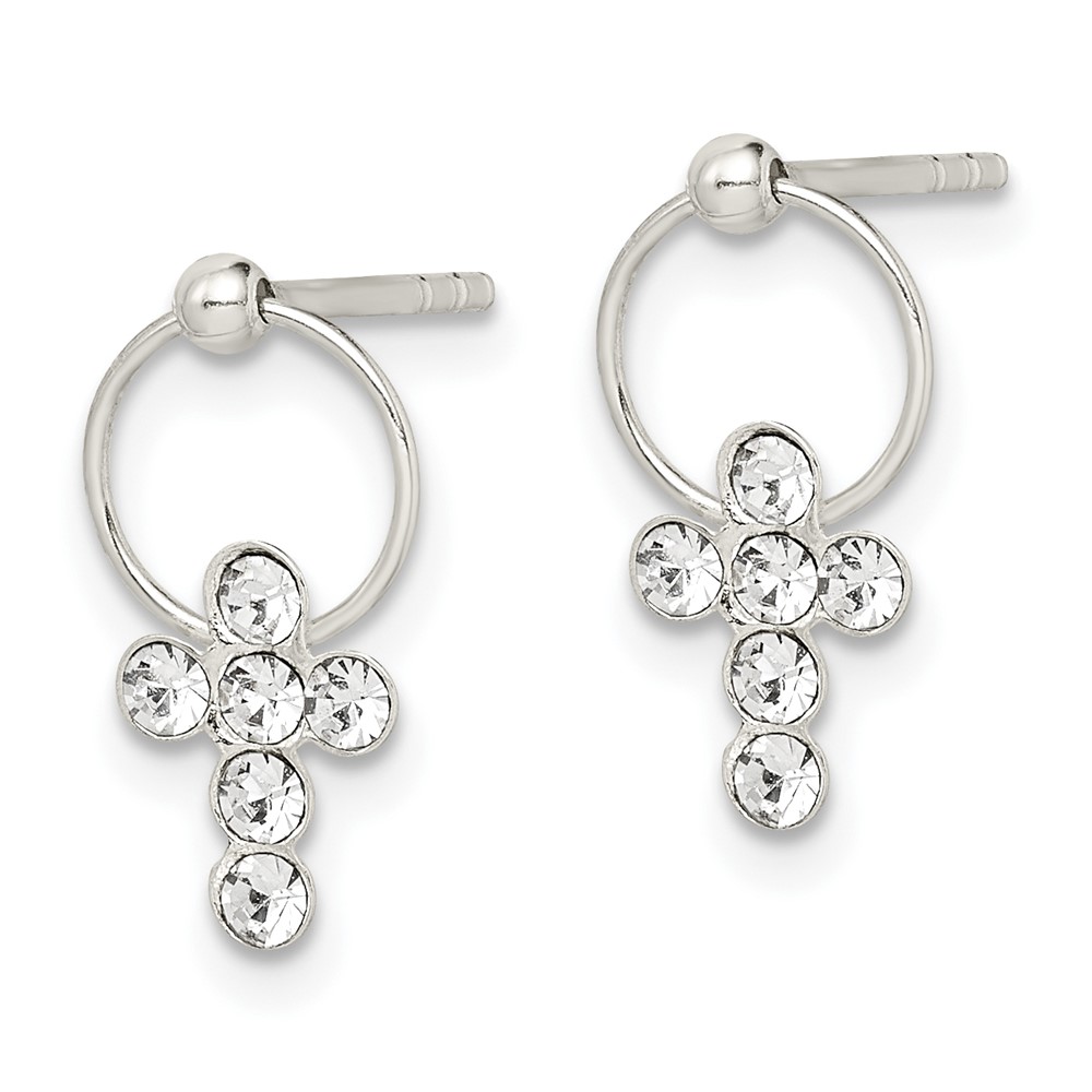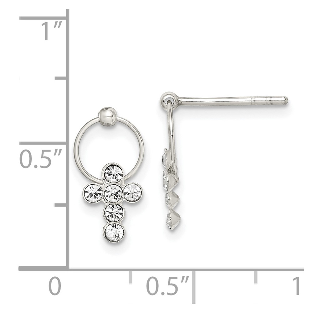 Sterling Silver Polished CZ Cross Circle Post Dangle Earrings