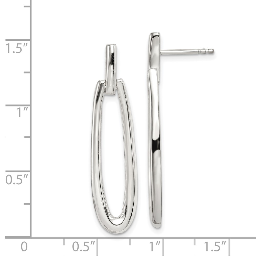 Sterling Silver Rhodium-plated Fancy Elongated Oval Post Dangle Earrings