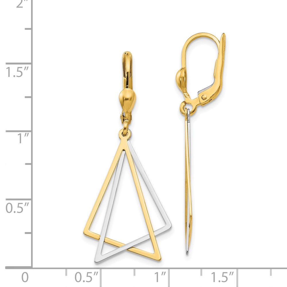 14k Two-tone Polished Triangles Drop Leverback Earrings