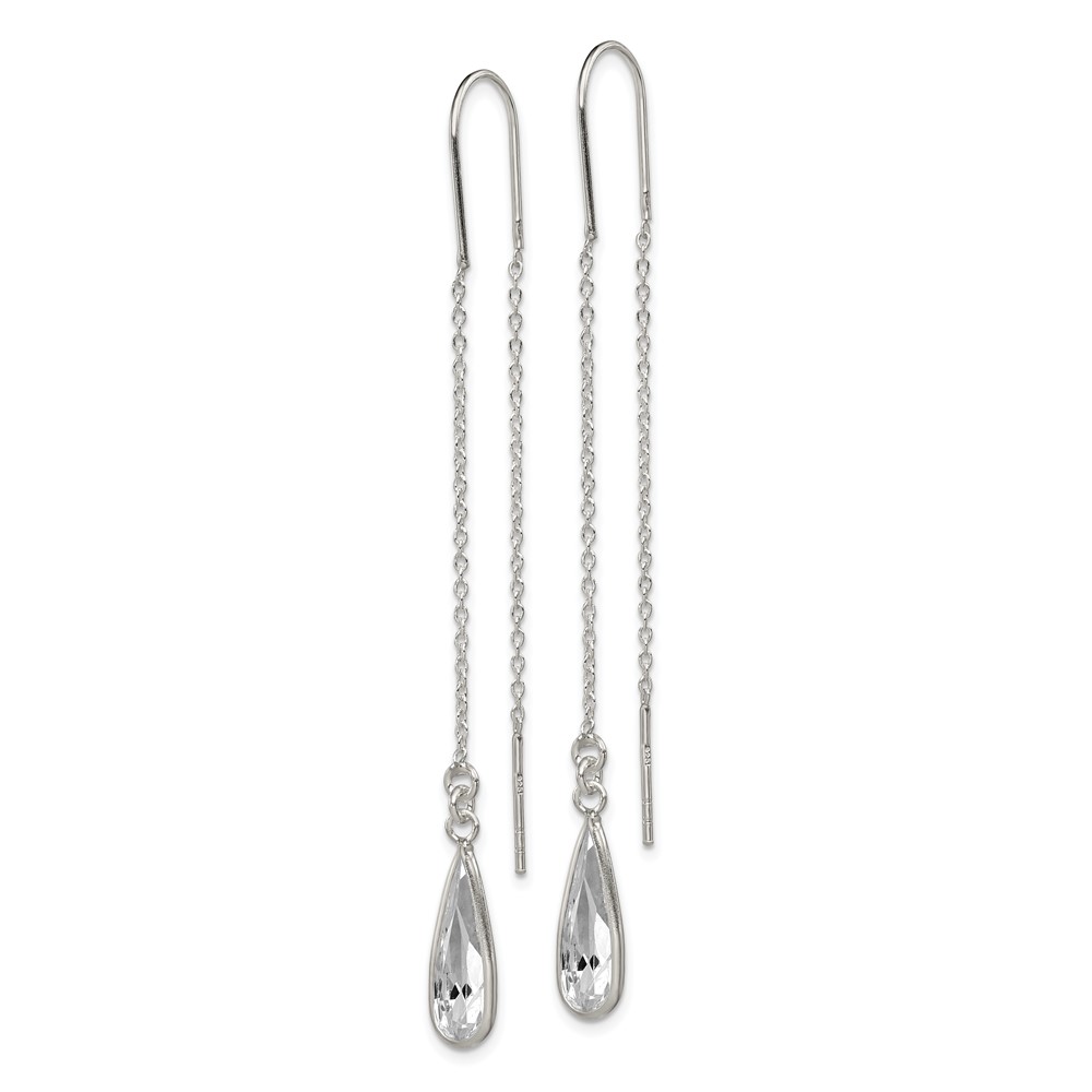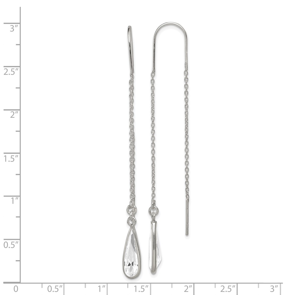 Sterling Silver Polished Crystal Teardrop Threader Earrings