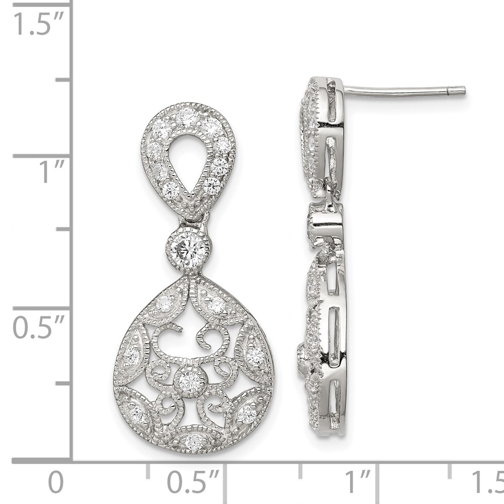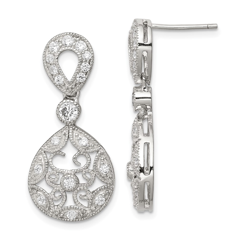 Sterling Silver Rhodium-plated Polished CZ Heart Front and Back Post Earrin