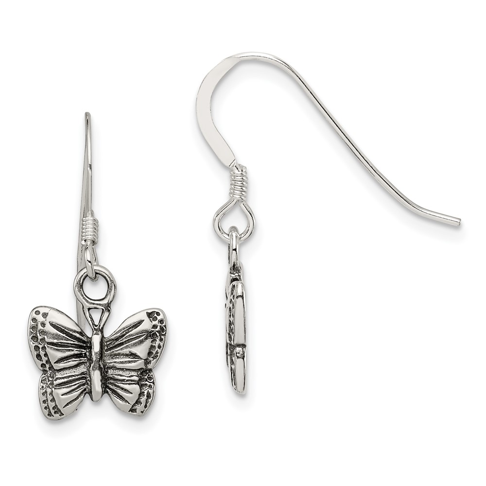 Sterling Silver Antiqued Butterfly Earrings