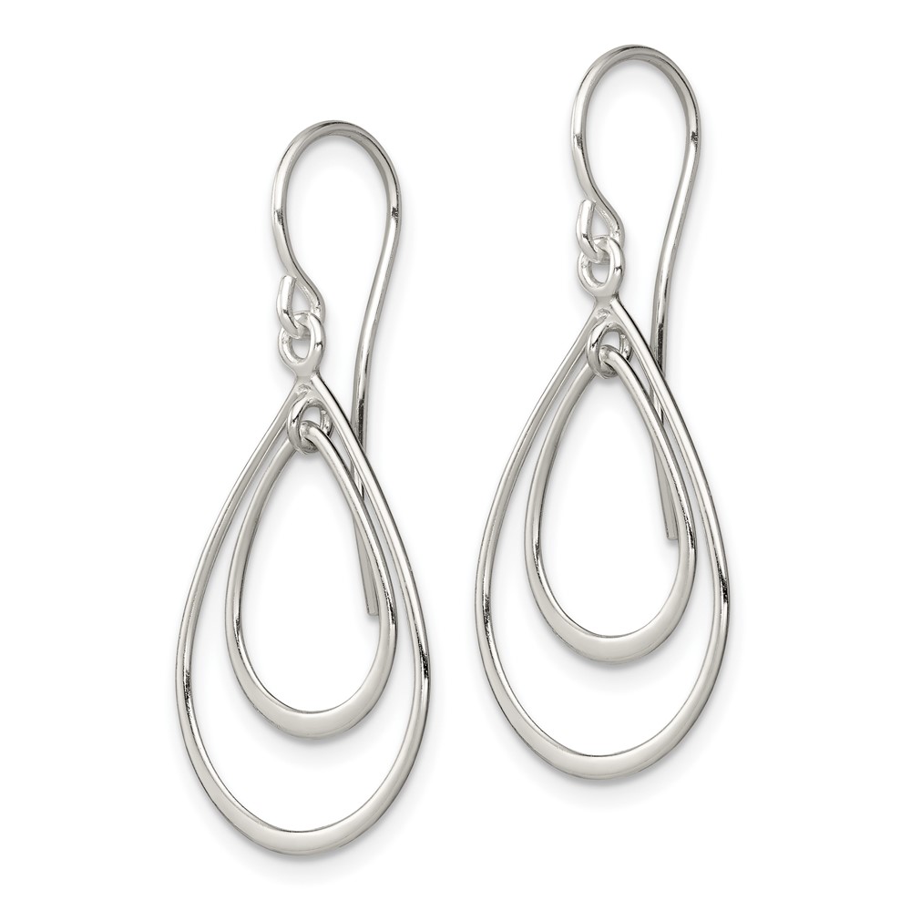Sterling Silver Polished Double Teardrop Dangle Earrings