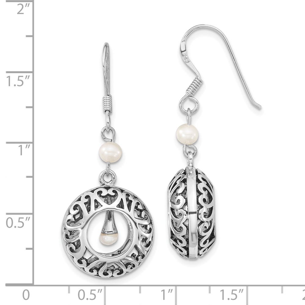 Sentimental Expressions Sterling Silver Rhodium-plated Antiqued FW Cultured Pearls of Wisdom Dangle Earrings