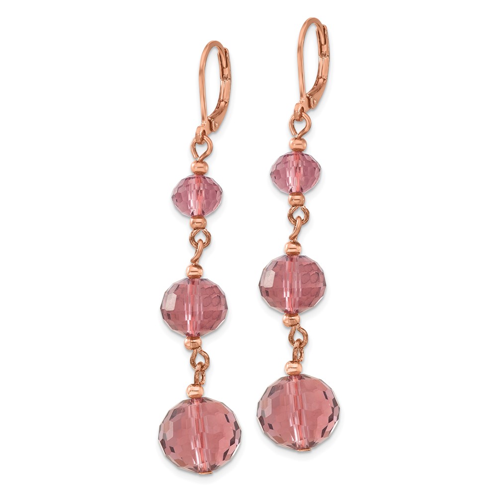 1928 Jewelry Rose-tone Graduated Faceted Purple Glass Beads Dangle Leverback Earrings