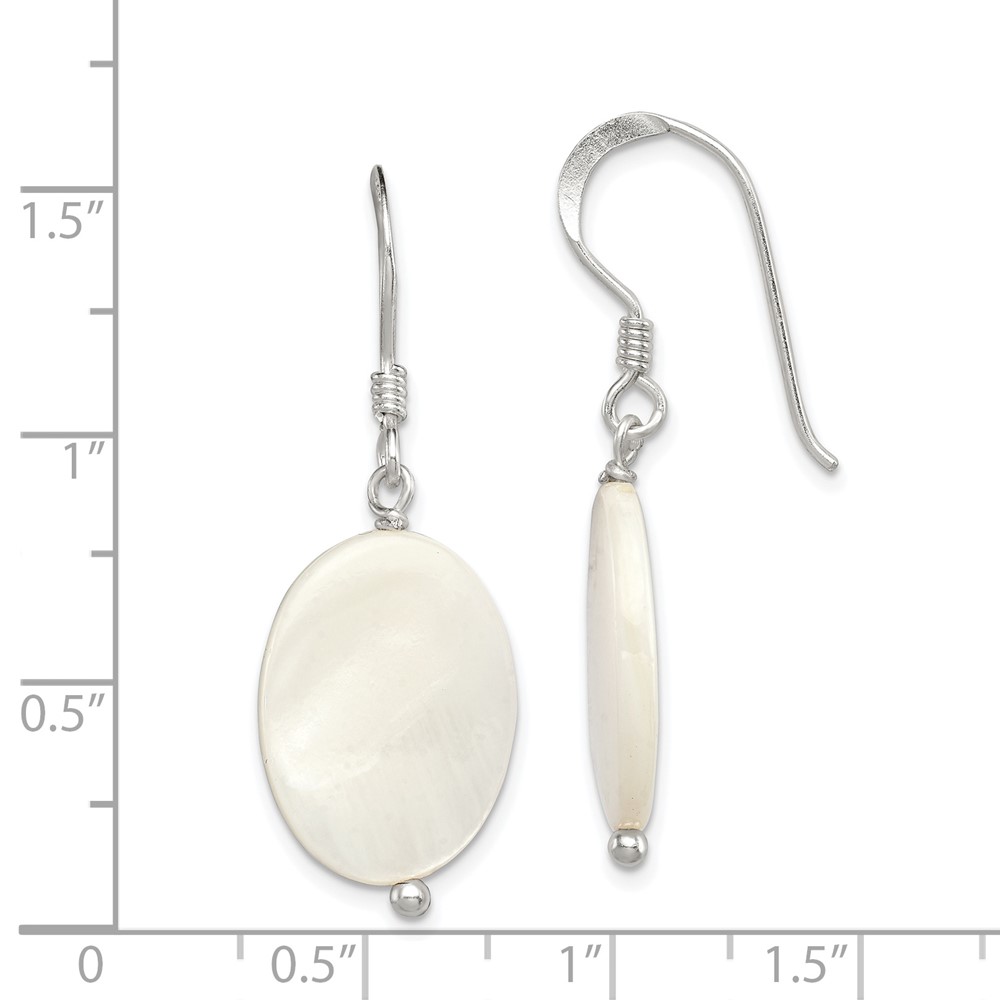 Sterling Silver Polished White Mother of Pearl Oval Dangle Earrings