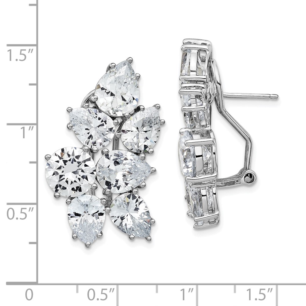 Cheryl M Sterling Silver Rhodium-plated Fancy Brilliant-cut CZ Cluster Omega Back Earrings