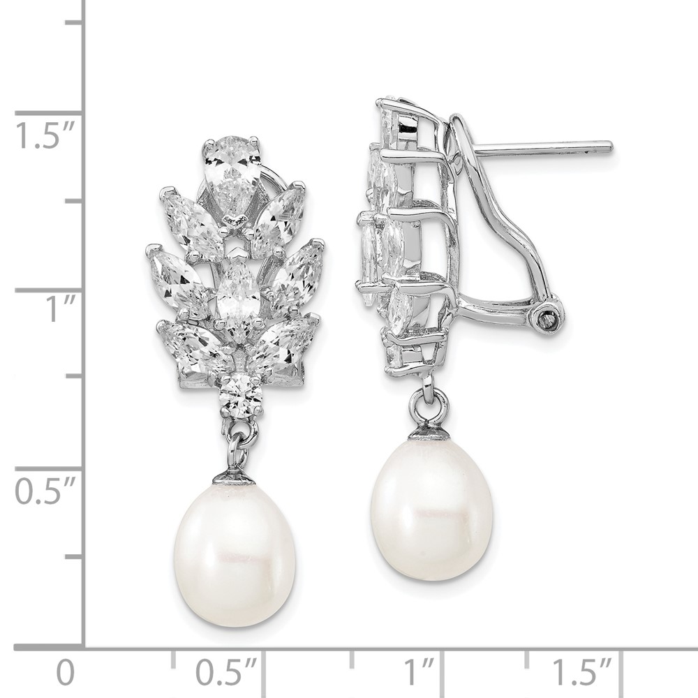 Cheryl M Sterling Silver Rhodium-plated Teardrop Freshwater Cultured Pearl Marquise-cut and Brilliant-cut CZ Fancy Omega Back Dangle Earrings