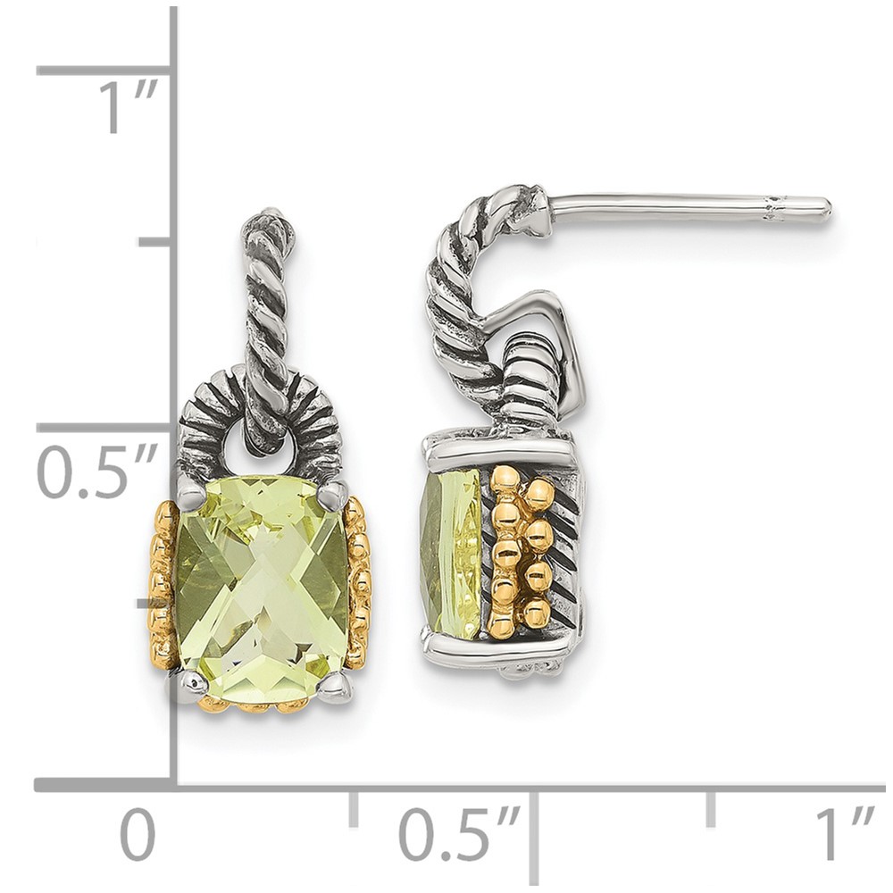Sterling Silver w/ 14k Accent Lemon Quartz Dangle Earrings