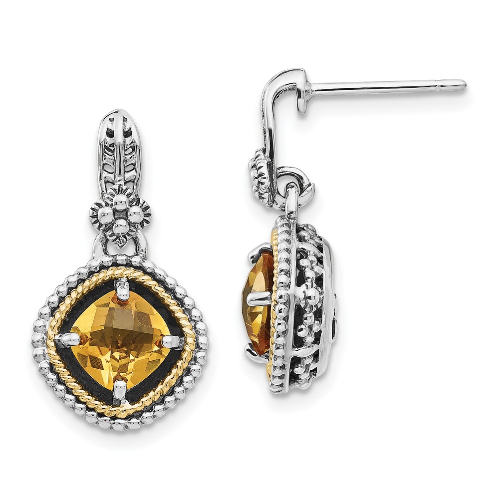 Shey Couture Sterling Silver with 14K Accent Antiqued Cushion Citrine Dangle Post Earrings