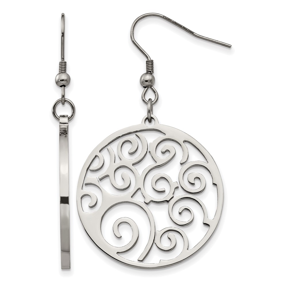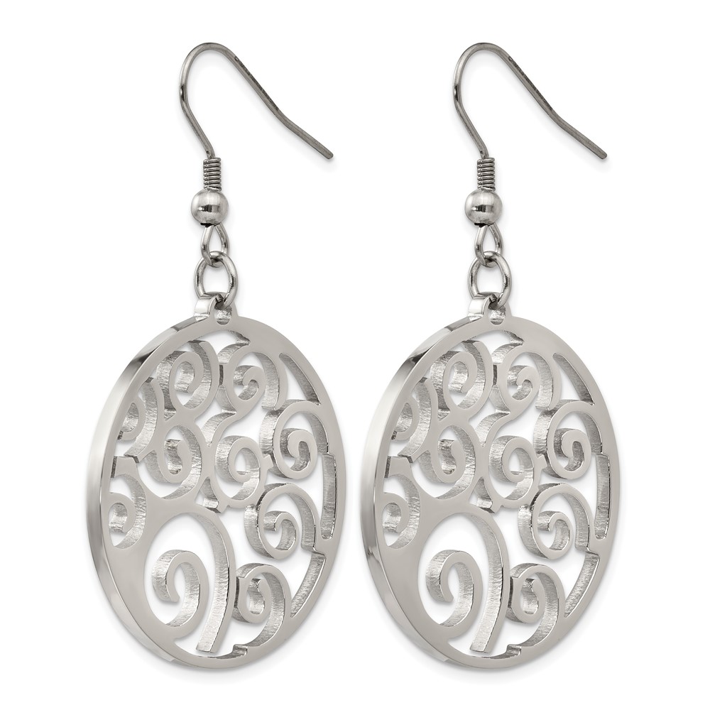 Chisel Stainless Steel Polished Fancy Swirl Cut out Dangle Shepherd Hook Earrings