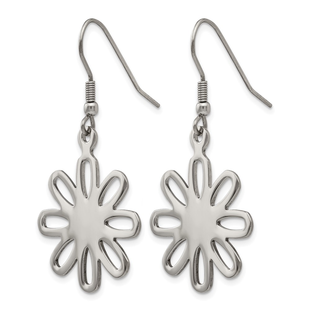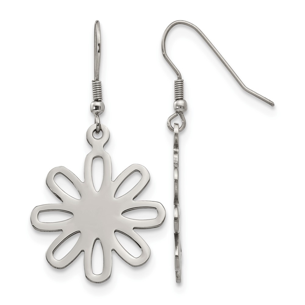 Chisel Stainless Steel Polished Large Flower Dangle Shepherd Hook Earrings