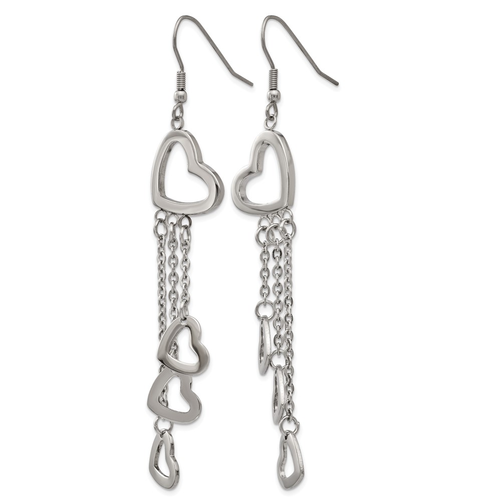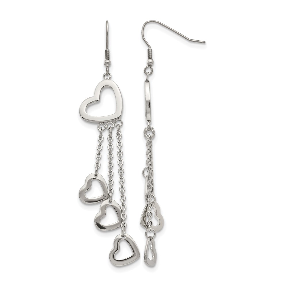 Chisel Stainless Steel Polished Hearts Dangle Shepherd Hook Earrings