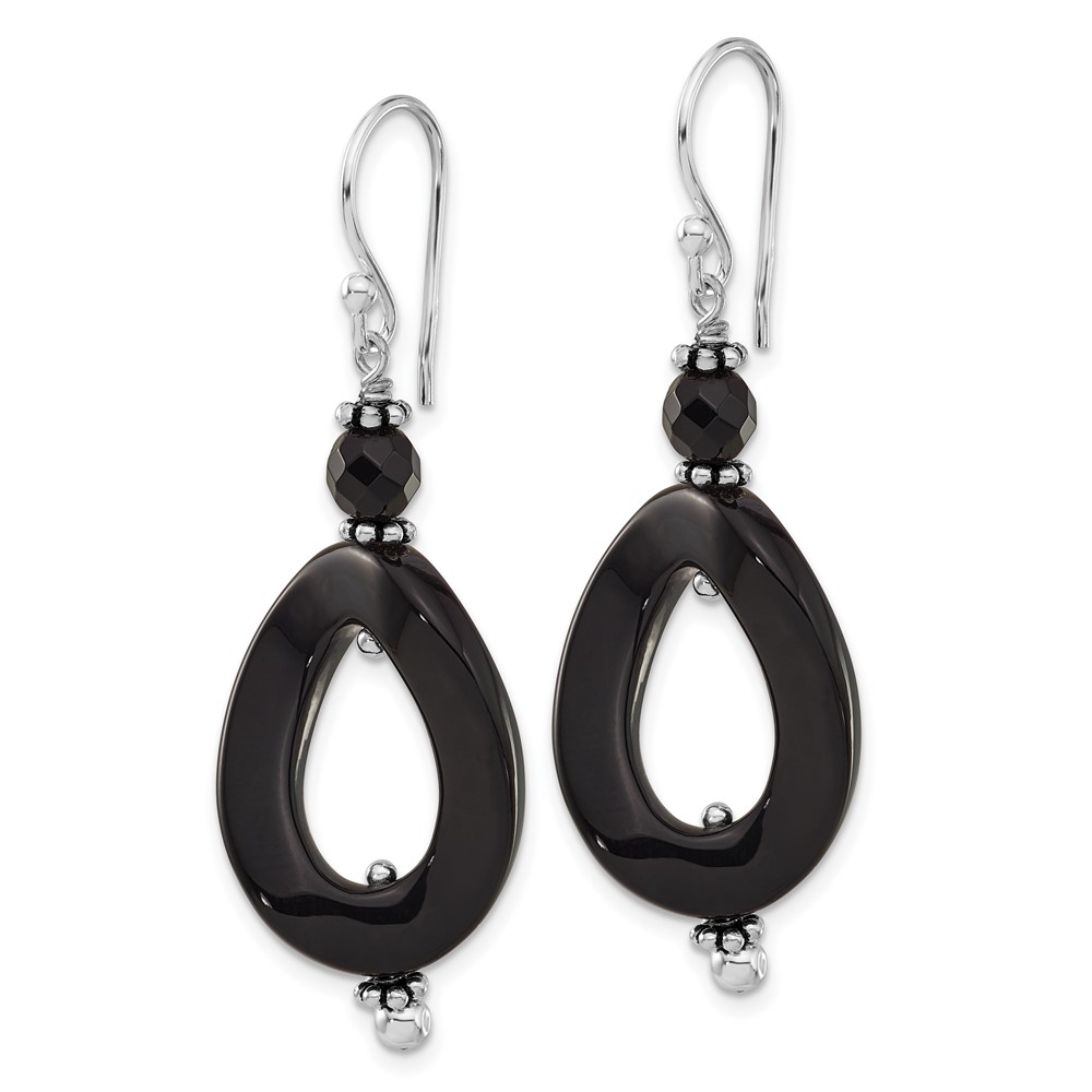 Sterling Silver Onyx Oval Twist Dangle Earrings